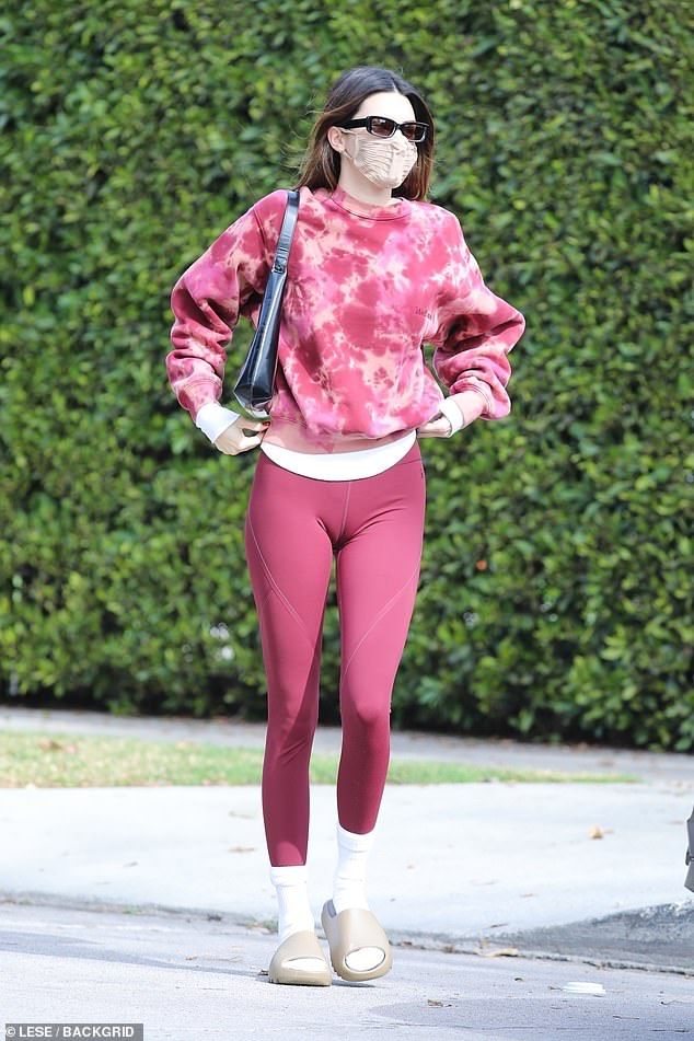 Kendall Jenner sports clingy cranberry leggings for private Pilates class in Los Angeles: ‘No days off’